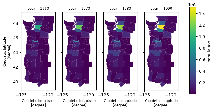 13    coords=dict(county=counties.geometry, year=[1960, 1970, 1980, 1990]),